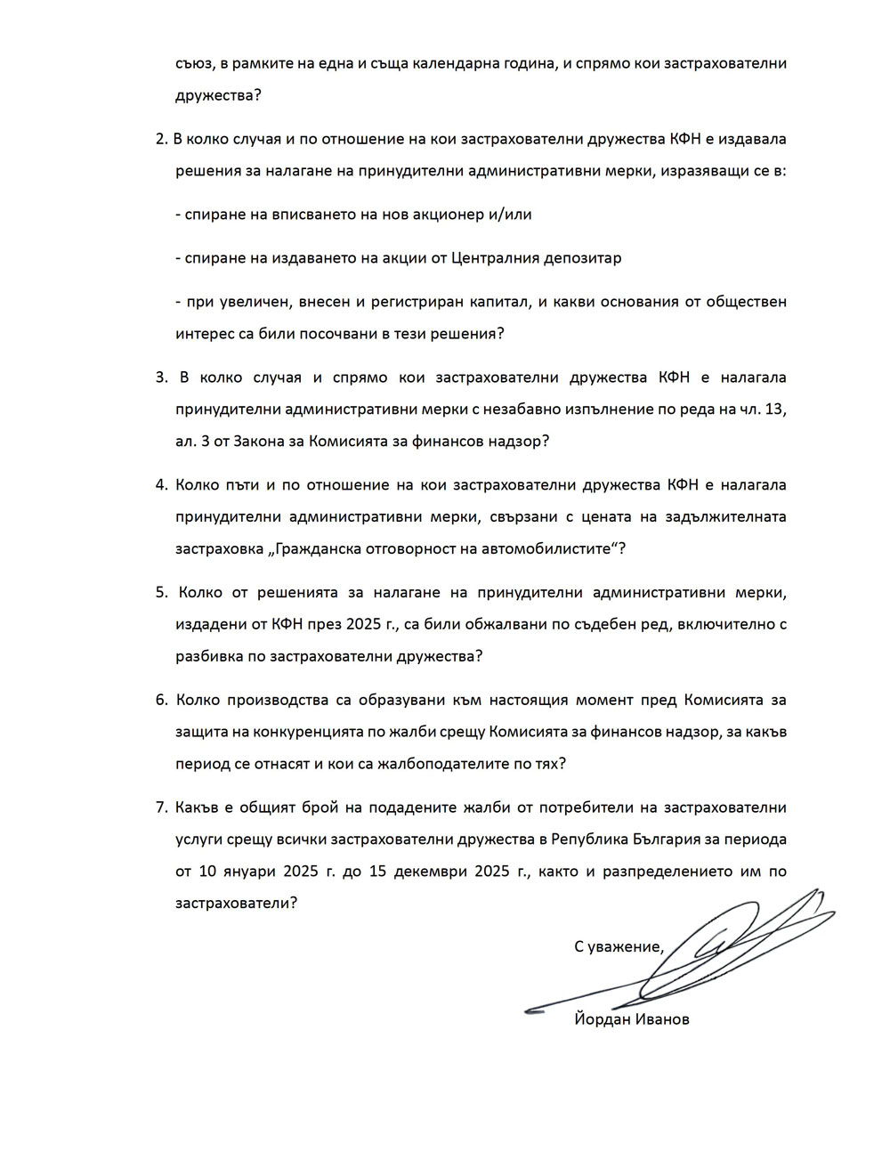 Въпроси към КФН от депутата Йордан Иванов